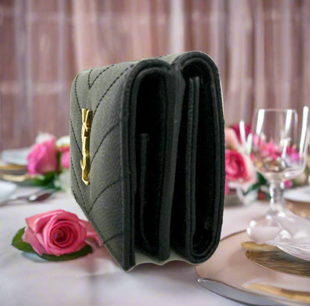 Saint Laurent Cassandra Quilted Leather Compact Trifold Wallet with COA